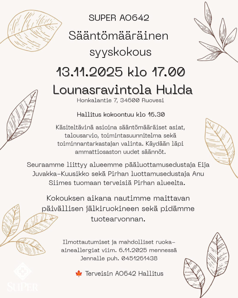 Tapahtumat Tapahtumat SuPer nuoret TapahtumatAmmattiosastomme tapahtumista ilmoitamme yksiköiden ilmoitustauluilla, somessa sekä täällä sivuilla. Jos on kysyttävää tapahtumista ota yhteyttä!